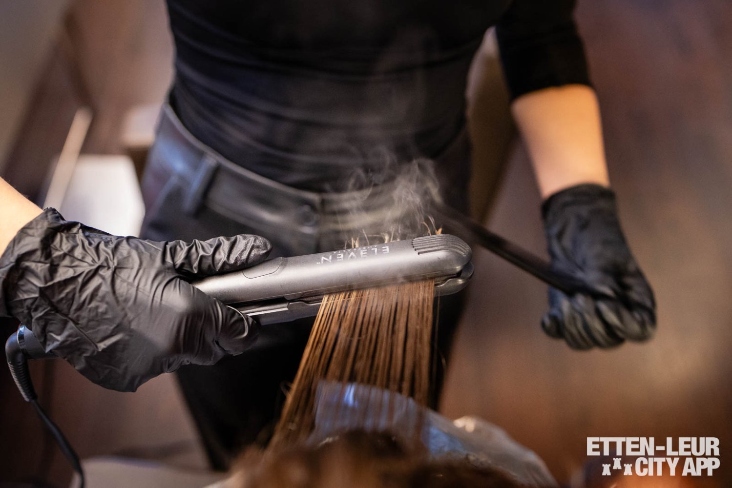 Na het wachten onder de warmtekap worden de haren gestyled, wat essentieel is om de keratine diep in het haar te laten doordringen. Tijdens het stylen is het heel normaal dat de keratine op het haar begint te roken als gevolg van het warme contact met de stylingtang. Deze reactie zorgt ervoor dat de producten optimaal hun werk doen en diep doordringen in het haar. Dit resulteert in een langdurig zijdezacht gevoel, aangezien het haar van binnenuit behandeld wordt.