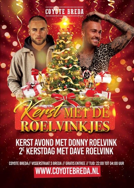 Beide broers hebben een mooie carrière opgebouwd en zijn actief in de muziekwereld Donny heeft meerdere nummers uitgebracht en Dave maakt al jaren alle dames gek achter de draaitafels. Op kerstavond zal Donny Roelvink optreden en tweede kerstdag Dave Roelvink. Aan de komst van de broers zitten meerdere acties verbonden dus hou de Facebook in de gaten en maak kans op te gekke prijzen. Wie is jouw favoriet?