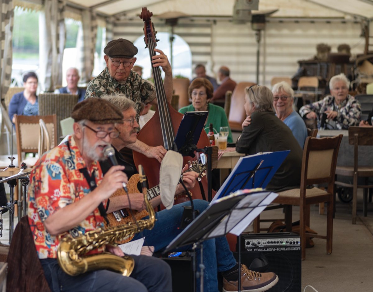 Aan het einde van dit sfeervolle creatieve straatje bevond zich een podium, waar diverse bands en muziekgroepen optraden. Bij het optreden van dwarsfluit ensemble Prima Volta op zaterdagochtend, floten zelfs de vogels in het bos mee.
