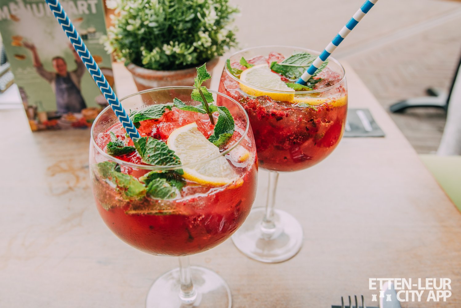 Op aanraden van het vriendelijke personeel beginnen we met een zelfgemaakte bosvruchten lemonade. En wat een feestelijke start is van deze lunch! Dit frisse drankje wordt geschonken in een prachtig glas en smaakt heerlijk. Het begint helaas wat te regenen, dus nemen we gauw plaats in het warme en gezellige restaurant.