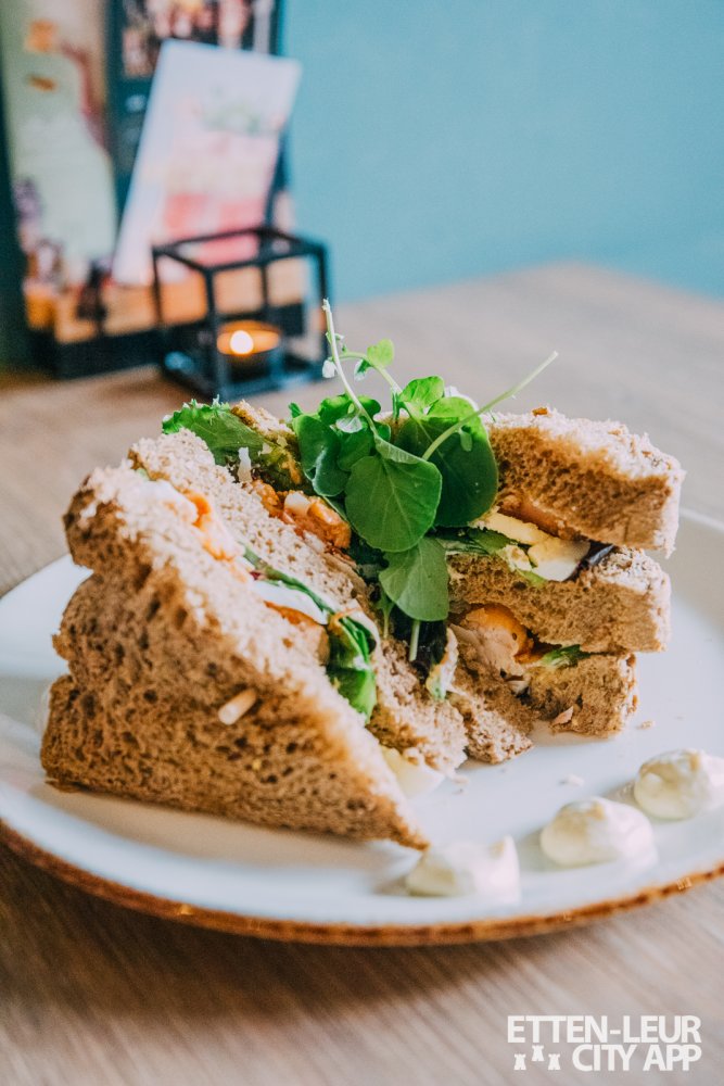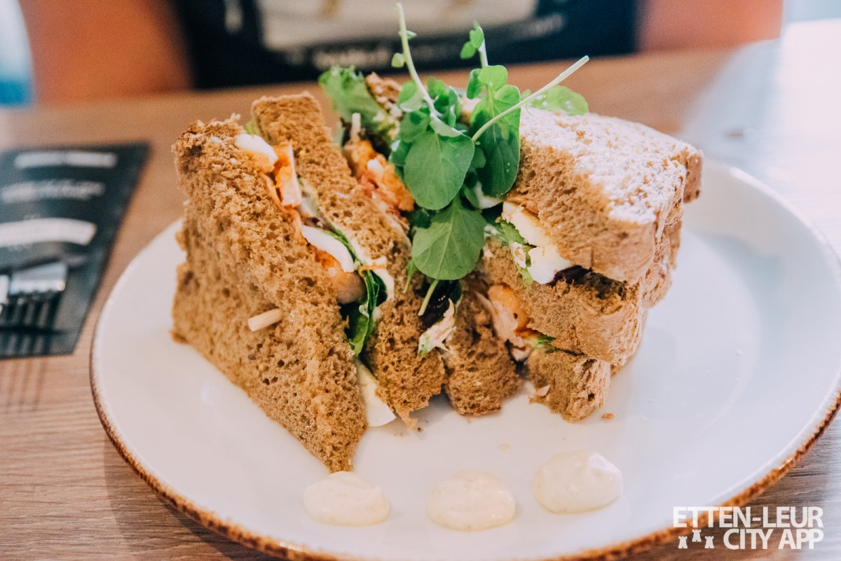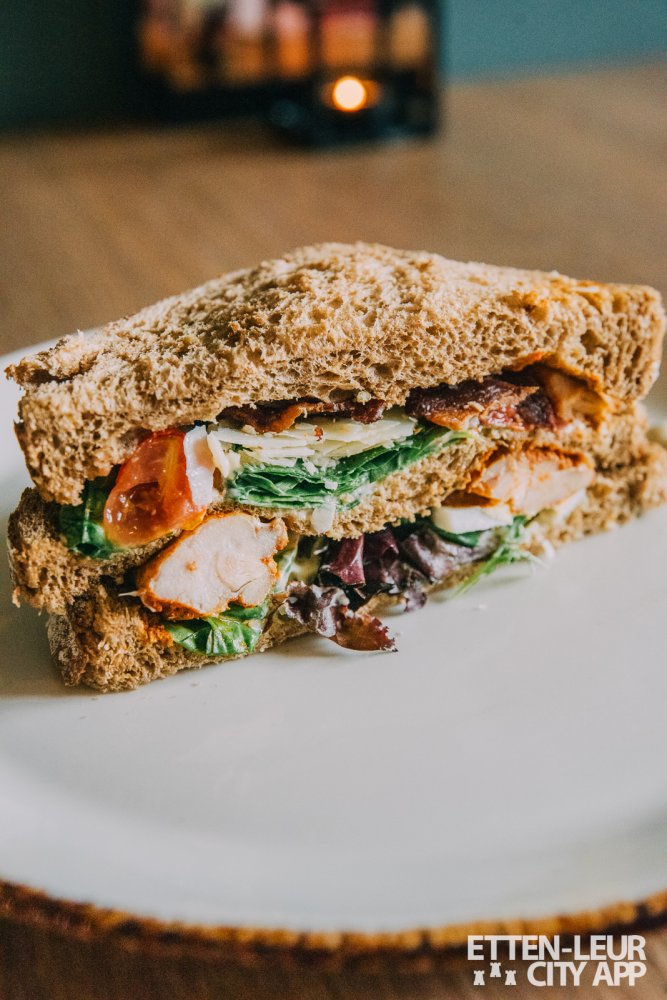 Onze eerste keuze valt op de clubsandwich kip. Deze clubsandwich bestaat uit robuuste boterhammen met heerlijk kruidige geroosterde kip, gekookt ei, spek, Parmezaanse kaas en een saus van mosterdmayonaise. Met een flinke hap proef je alle verse ingrediënten en dit zorgt voor een smaakvol geheel!