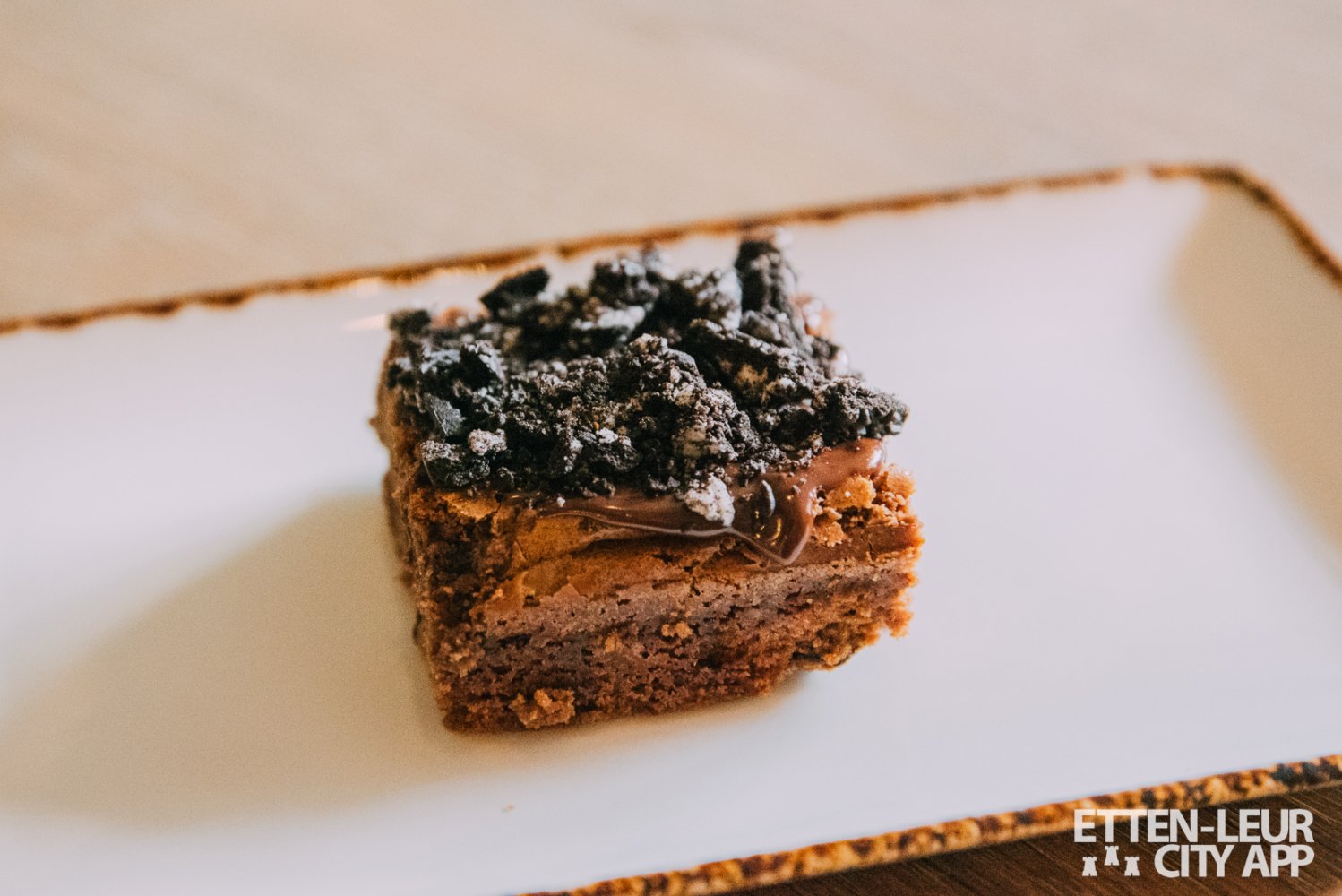 Na deze smakelijke lunchgerechten drinken we nog een kop thee met een (hoe kan het ook anders) brownie to share. Op aanraden kiezen we voor de Oreo Brownie. Wat een fantastische keuze, deze brownie is onwijs smeuïg en de oreo proef je er goed in terug!
