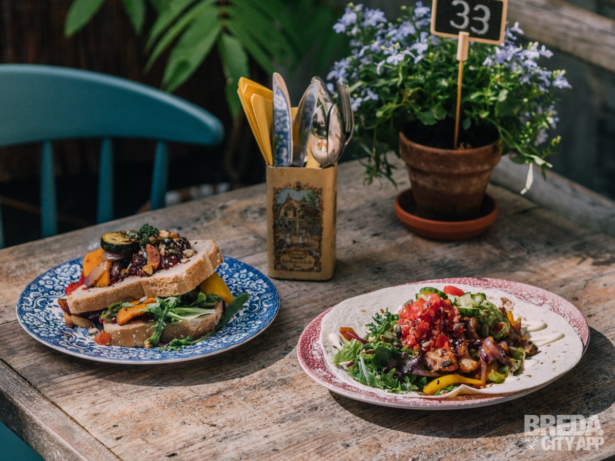 Alles is vers, wordt zelfgemaakt en dat proef je. De zomerse wrap is een tortilla die rijkelijk is belegd met kip, tomatensalsa, een zelfgemaakte crunch van noten, paprika, ui, guacamole en een frisse dressing. De kip is lekker mals en goed gekruid. De smaken van de groentes gaan goed samen en de subtiele pittige smaak wordt gekoeld door de dressing. Van het broodje biet met gegrilde courgette, paprika, zoete aardappel en een crunch van noten worden we ook erg blij. Het brood is lekker knapperig en de zoete bietenspread is zelf gedraaid. De groentes zijn van te voren gemarineerd waardoor je de kruiden goed proeft. Mijn tafelgenoot laat weten dat hij bij iedere hap weer wordt verrast door een nieuwe smaak.
