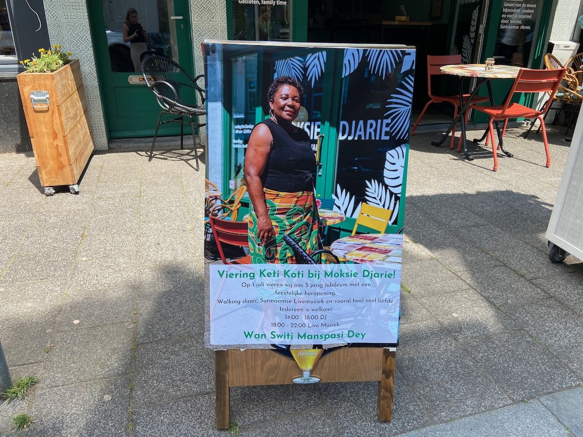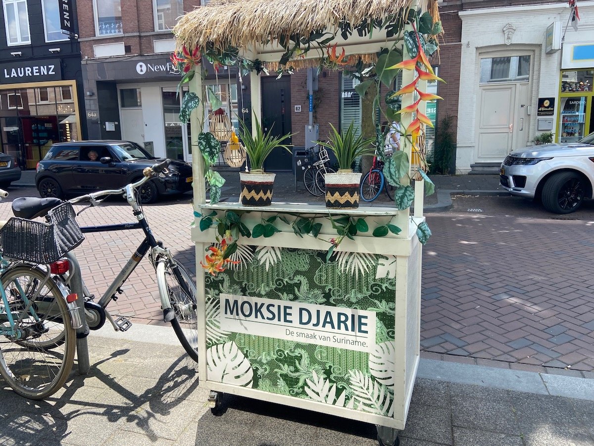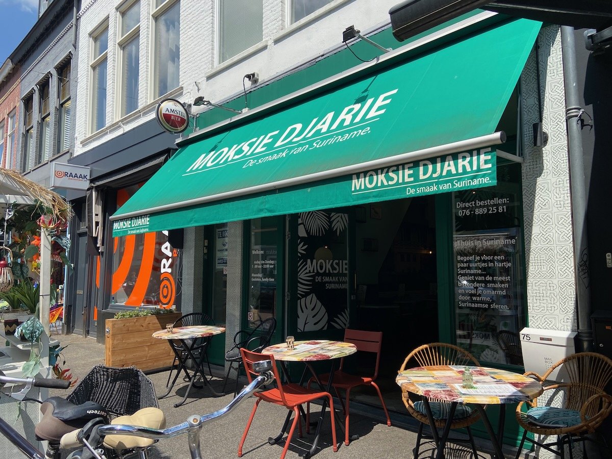De letterlijke vertaling van ‘Moksie Djarie’ is ‘gemengde erf’. In de ruimste zin van het woord verwijst ‘Moksie Djarie’ naar de smeltkroes van wereldkeukens waaruit de Surinaamse keuken is ontstaan. Op de kaart vind je klassiekers zoals Javaanse Bami en Nasi, maar uiteraard ook Roti. Wie het eethuis binnenstapt waant zich in ‘klein Suriname’!  De unieke sfeer in combinatie met gastvrijheid maakt Moksie Djari zo succecvol in de afgelopen jaren.