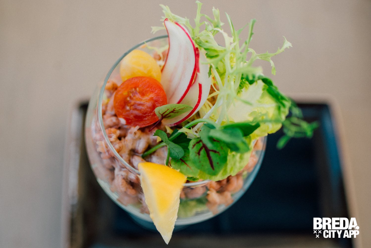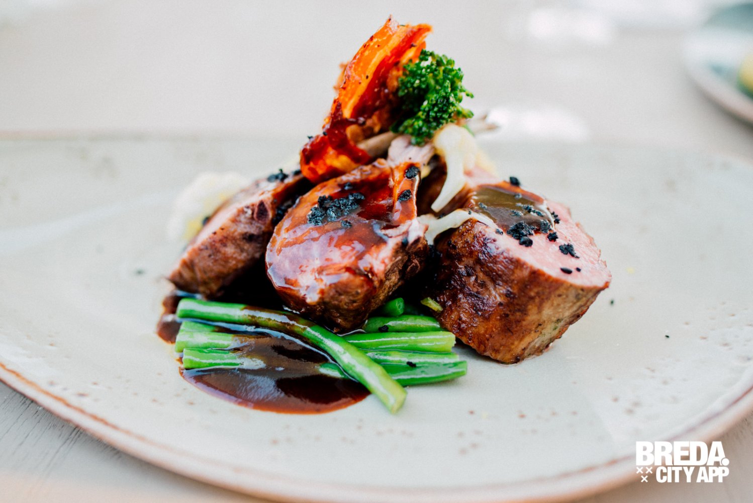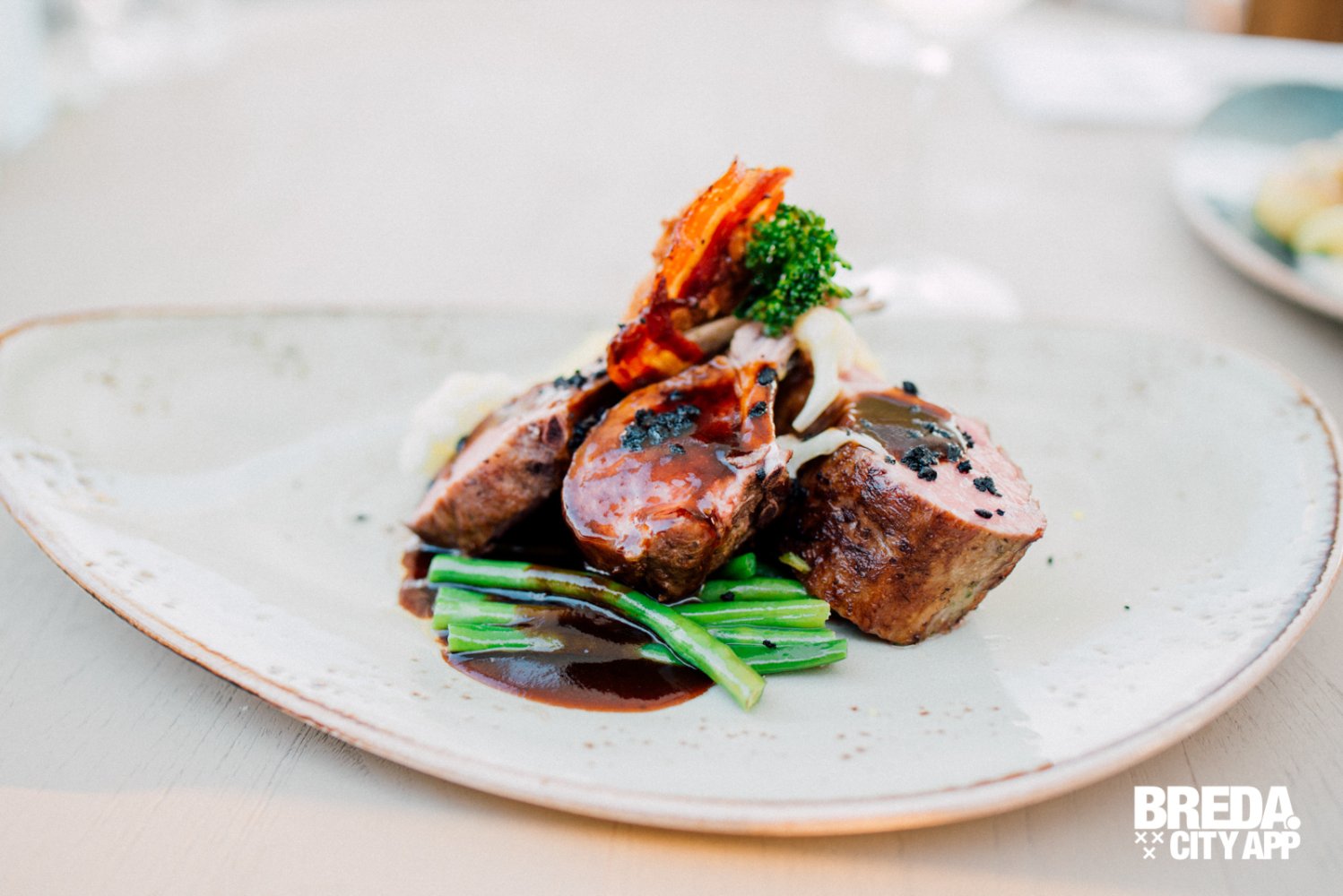 Om voor wat afwisseling te zorgen tussen de vis-gerechten bestelt mijn partner de lamsrack met gerookte knoflookjus. De lamsrack wordt geserveerd met een lamskroketje en tabouleh, vergelijkbaar met couscous. Een mooi lente-achtig vlees gerecht, vol van smaak, niet te zwaar en fris door de tabouleh. Het vlees is per-fect gegaard en super mals. De lam is zo zacht dat hij bijna smelt op je tong. Genieten!