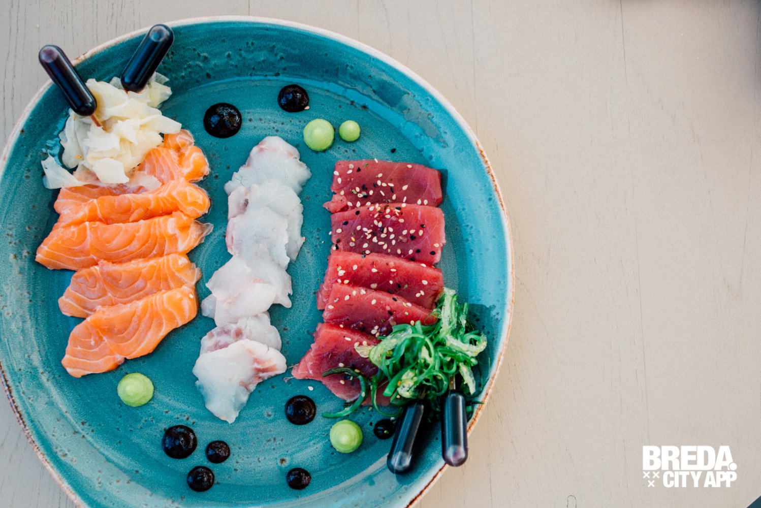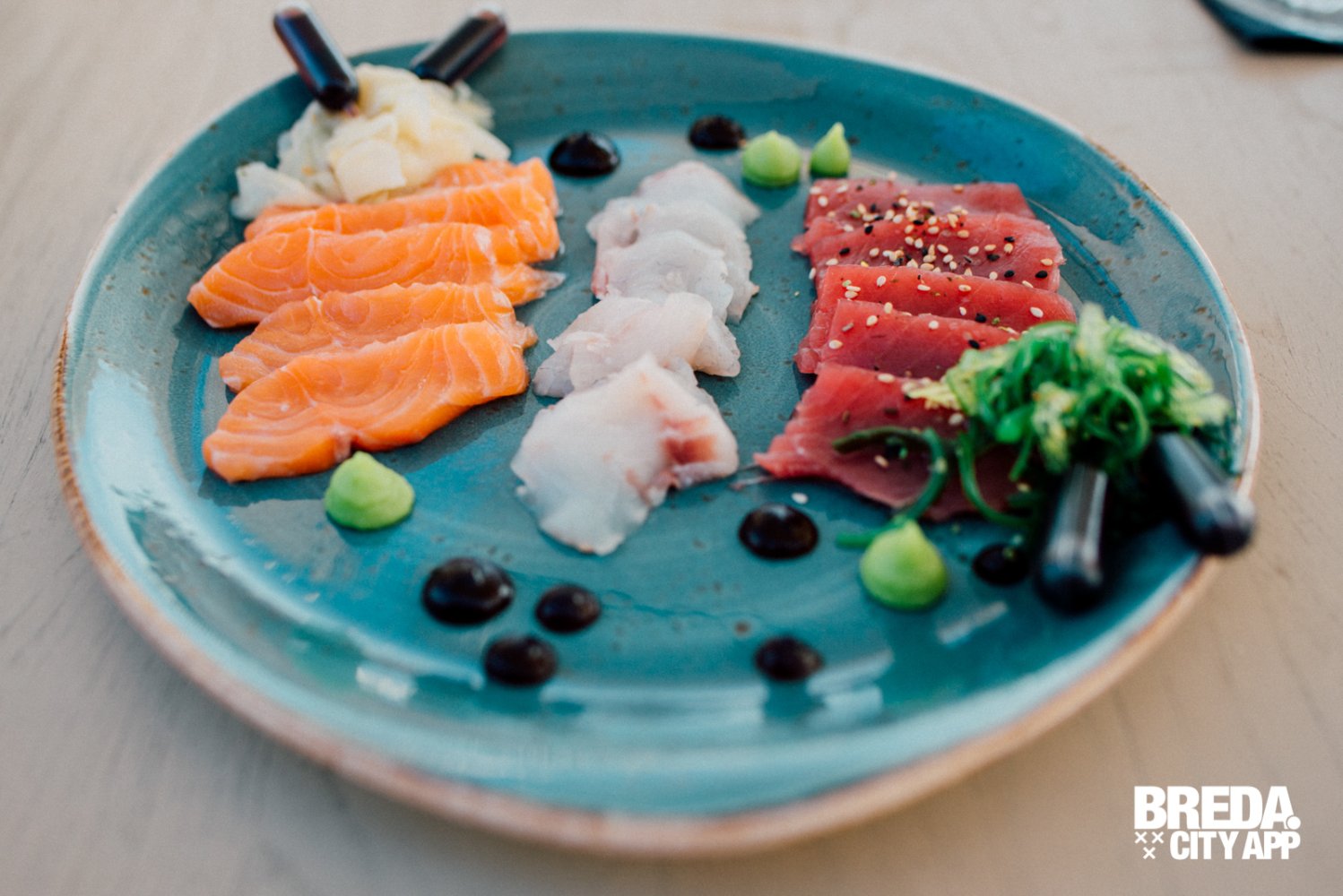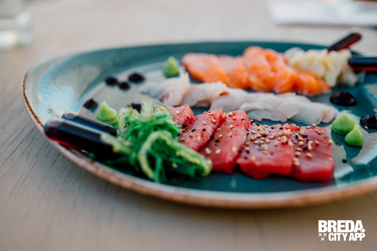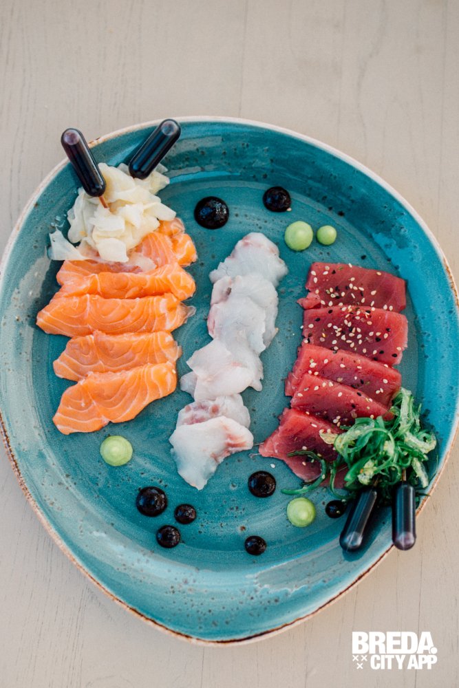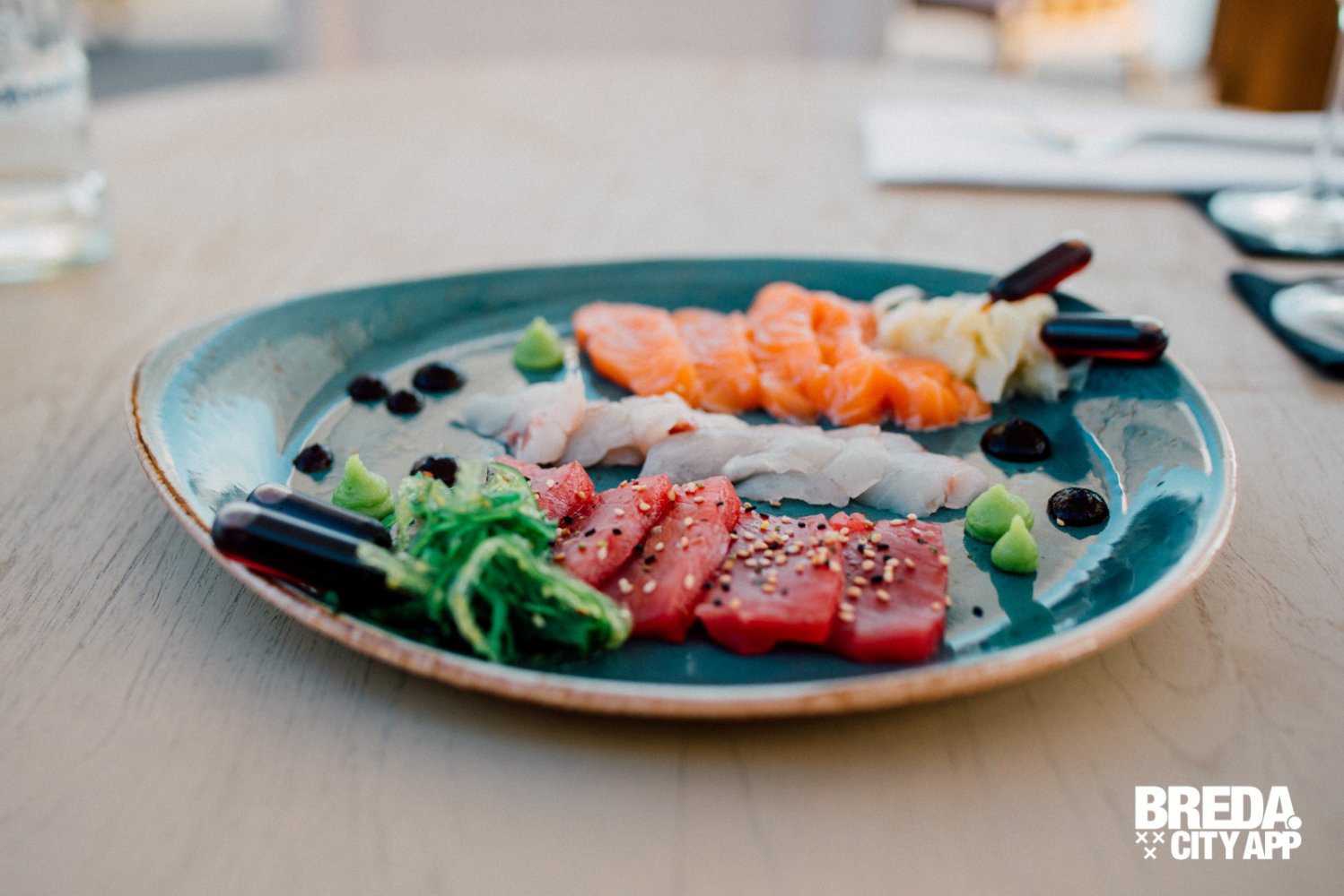We zien veel van deze etagères voorbij komen, ze zien er heerlijk uit! Maar wij besluiten ons toch te laten verrassen en gaan voor de a-la-carte keuzes. We starten met vis, lekker zomers; een garnalen cocktail en sashimi. Wow! Wat een grote porties en wat is het lekker. Super goed op smaak, prachtig gepresenteerd, dat belooft veel goeds!