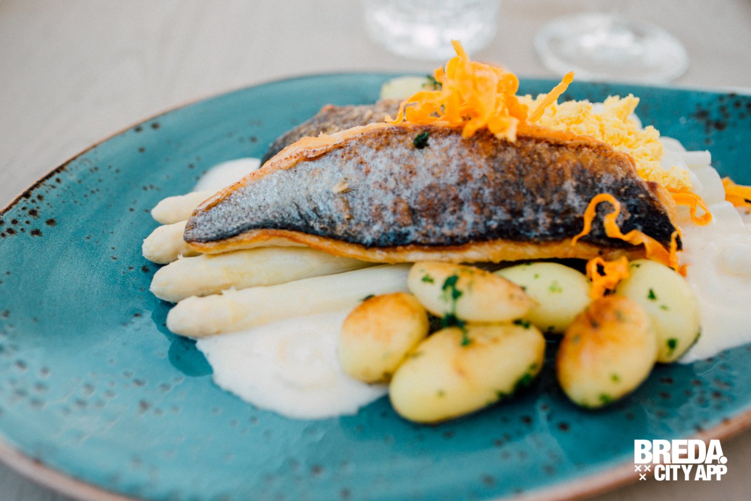 Het hoofdgerecht is een chef’s-special; asperges met zwaardvis. Ik denk dat ik nog nooit zulke lekkere asperges op heb, ze hebben een licht zoetje, zijn fris, precies goed gegaard en worden geserveerd met geklaarde boter en een beurre Blanc. Basic, maar zó goed. De asperges zijn de seizoensfavoriet van eigenaar Thomas, ik begrijp wel waarom!