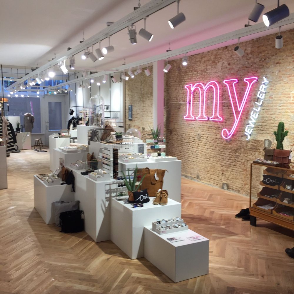 My Jewellery is in vijf jaar tijd flink gegroeid en heeft een enorme online community opgebouwd. Dagelijks inspireren wij honderdduizenden vrouwen via social media. We willen als merk groeien en daarom willen wij ook fysiek aanwezig zijn in de winkelstraat. Om die reden is in november 2015 de eerste Brand Boutique geopend in Den Bosch. In één van de gezelligste straten van Den Bosch vind je de boutique geïnspireerd op de grote winkelsteden.