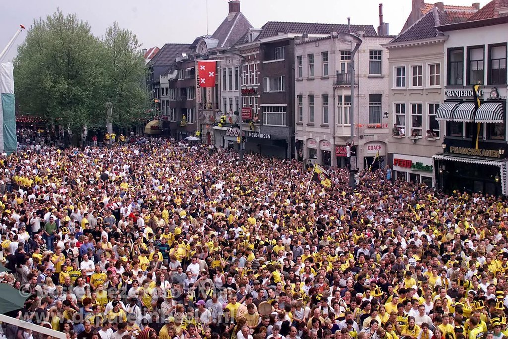 Feest met NAC spelers op de Grote Markt bij promoveren