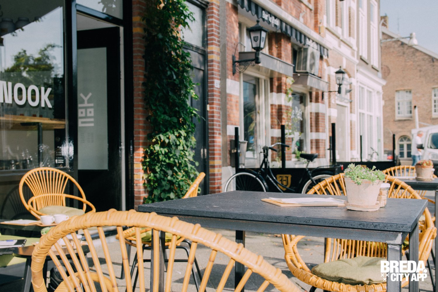 Terwijl wij plaats nemen in een van de leuke zitjes op het terras met onze kop koffie, bladeren we door de menukaart. Nook legt de focus voornamelijk op thee, maar je bent hier ook van harte welkom voor een heerlijk ontbijtje, een gezonde lunch, diverse soorten gebak, verse sappen of een goede kop koffie.