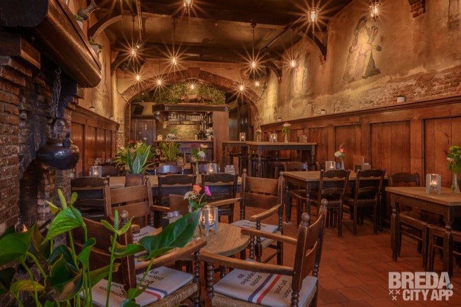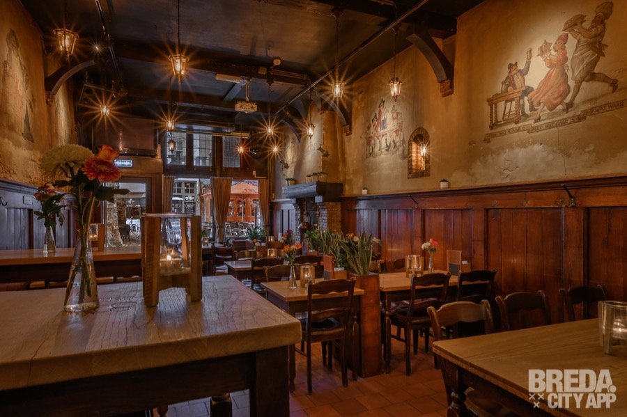 Het Voske heeft een warm en gezellig interieur, wat aanvoelt als grootmoeders huiskamer. Aan de muur vind je oude muurschilderingen met beelden van Breda. In de zomermaanden zit je hier ook heerlijk op het terras, onder de bomen op de Grote Markt.