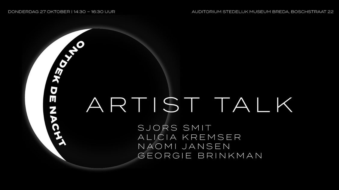 De vier kunstenaars van 'Ontdek de Nacht' geven op donderdag 27 oktober een bijzondere blik op het werk dat ze afgelopen zomer maakten. Beeldend kunstenaar Yasser Ballemans, betrokken als ervaringsdeskundige bij 'Ontdek de Nacht', gaat in gesprek met de kunstenaars. Alicia, Georgie, Sjors en Naomi bieden een kijkje achter de schermen van hun jonge kunstenaarspraktijk en nemen je in het museum mee in hun beleving van het werk van Pieter Laurens Mol. Het programma start om 14.30 uur. Na afloop is er tijd om elkaar te ontmoeten!
