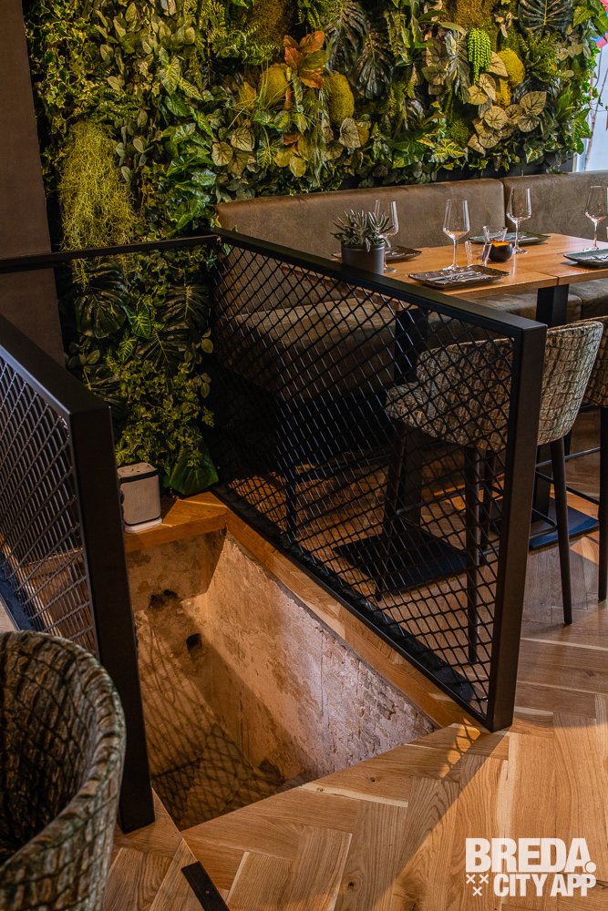 Een andere unieke eye-catcher is de ondergrondse wijnkelder. De kelder wordt momenteel nog verder ingericht, zodat je hier straks ook klein hapje en drankje kunt genieten. Er is ook een nauwe samenwerking met Latour en op de borrelkaart vind je naast escargots, oesters en bitterballen ook de charcuterie en kazen van onze overburen. Gedurende de hele dag serveren we naast de borrelkaart ook verschillende vis, vlees en vegetarische gerechten van het formaat tussengerecht, zo kun je lekker alles delen.