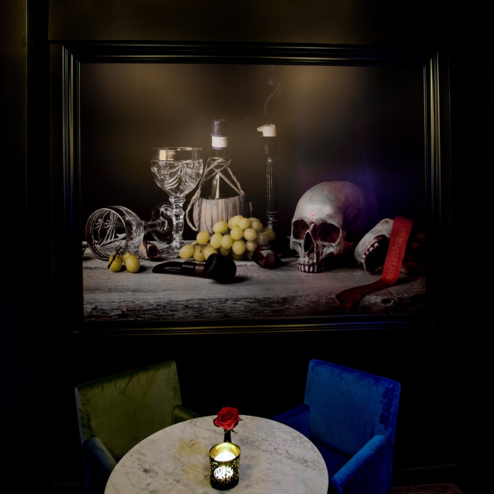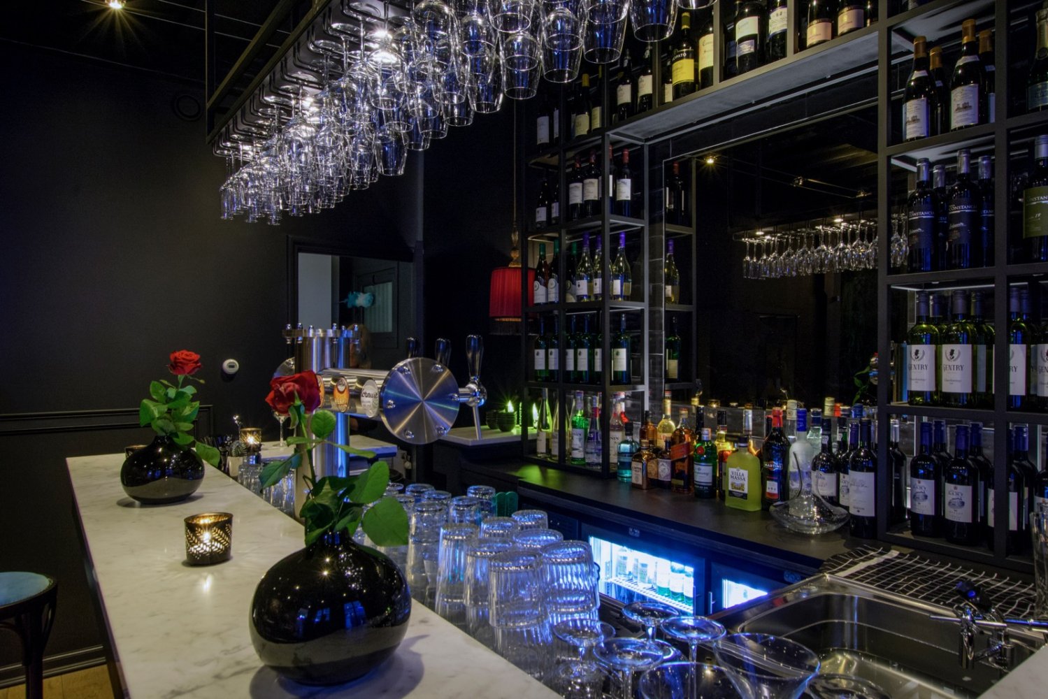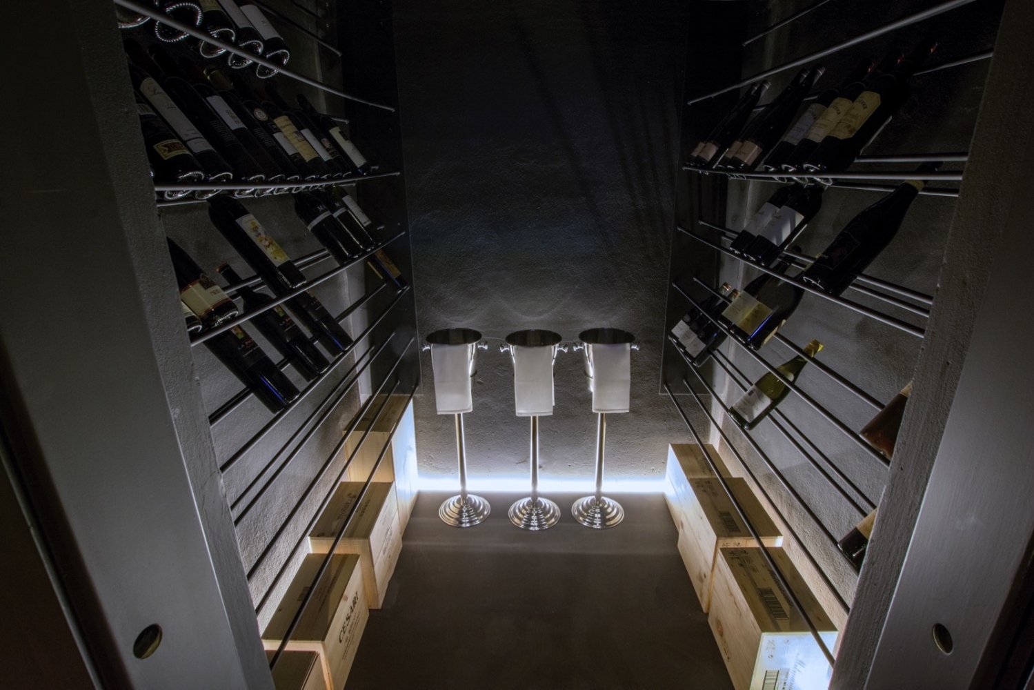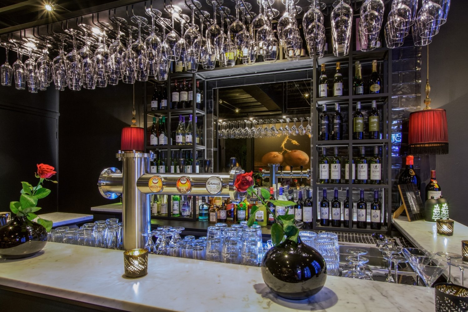 Vanuit de bar kijk je recht op de "wijnkluis", die vroeger diende als kluis van de Grote Kerk. In de wijnkluis worden nu de mooiste wijnen uitgestald, maar de kluis zelf is ook een unieke eye-cather!
