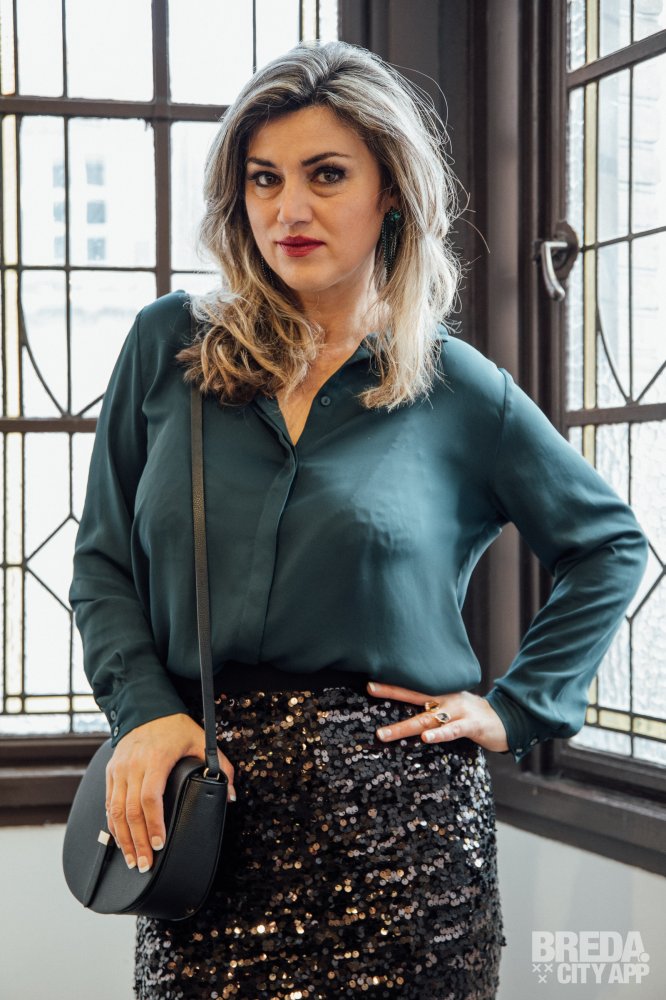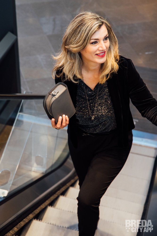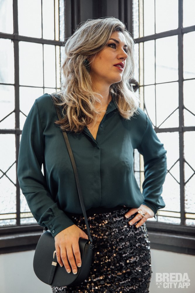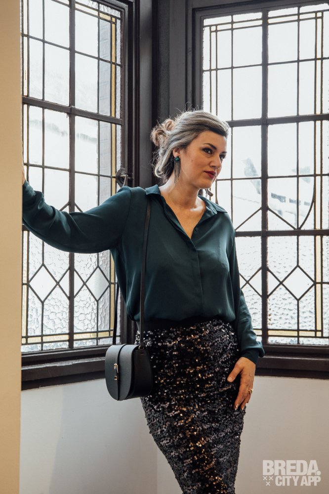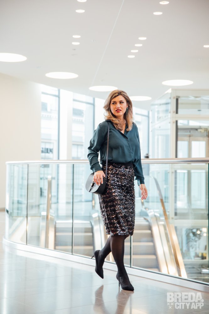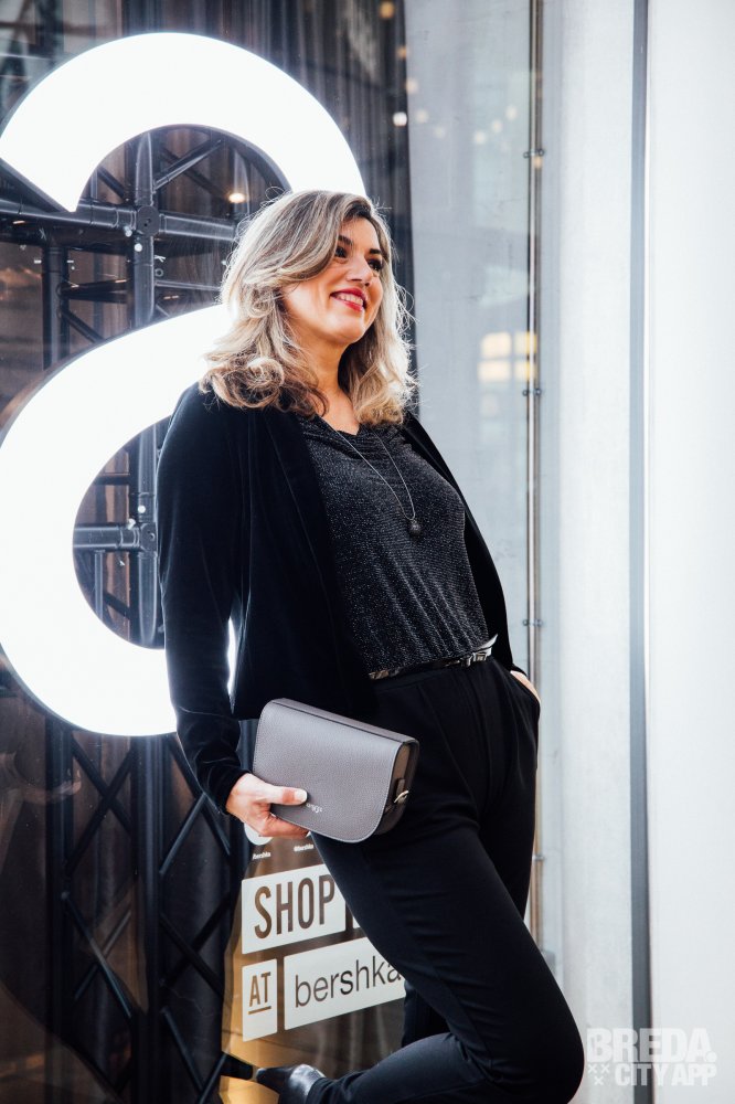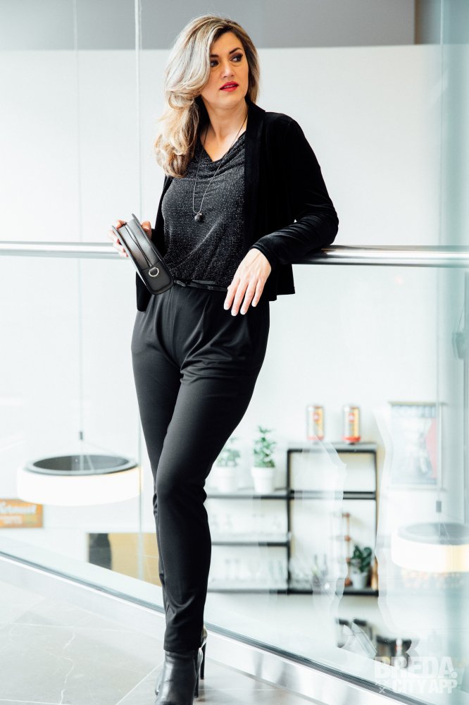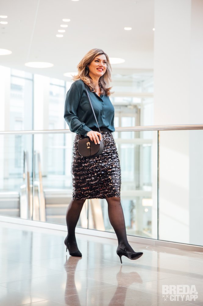 We gaan één deur verder, waar we bij S. Oliver deze outfit shoppen die zowel zakelijk als privé gedragen kan worden. De zwarte pantalon die Katalin draagt is stijlvol en chique, waardoor hij niet alleen geschikt is voor bijvoorbeeld een kerstdiner met vrienden of familie, maar ook tijdens een netwerkborrel of zakelijke bijeenkomst gedragen kan worden. In combinatie met de glittertop krijgt de outfit echt een feestelijk tintje.
