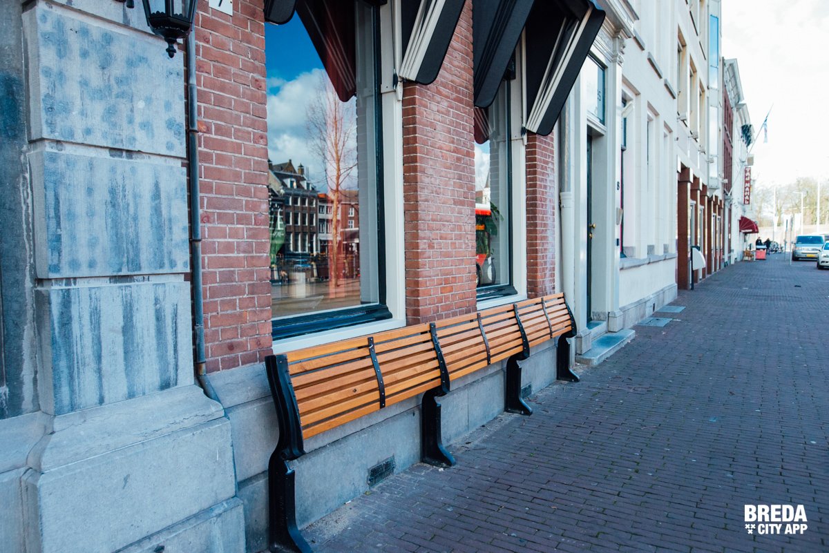 Het café is aan de haven gelegen, op Prinsenkade 7. Mede daardoor is het een heerlijke plek om te genieten van het zonnetje. Op de voorgevel zijn uitklapbare banken waar in de zomer een terras komt te staan, hier kun je genieten van de ochtendzon. Later op de dag kun je je begeven in de tuin, waar in de zomer picknick tafels komen te staan. Nils vertelt ons dat dit een van de langste zon-spots van Breda zal zijn.