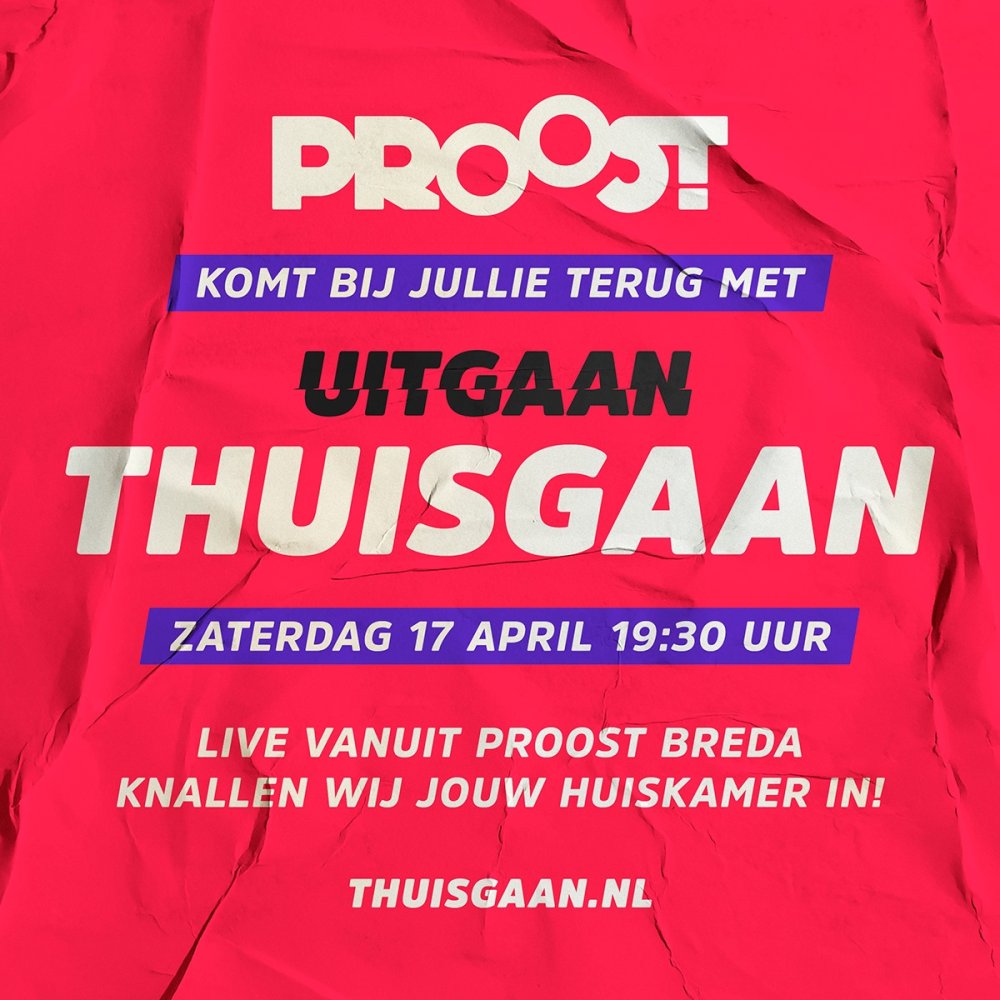 We missen elkaar, we missen het feesten en we missen vooral het uitgaan enorm. En daarom knalt Proost volgende week het feest weer rechtstreeks bij jullie de huiskamer in met een nieuwe editie van THUISGAAN!