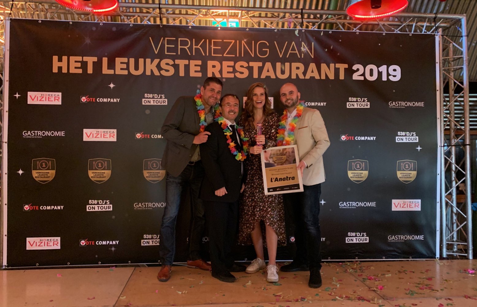 We kunnen er niet omheen dat Restaurant L’anatra goede zaken doet. Ze zijn hier zelf ook erg blij mee en zeiden het volgende over de Verkiezing van het Leukste Restaurant: “Het was een hele gezellige avond en via deze weg willen we al onze gasten bedanken die ons met hun stem hebben gesteund!”