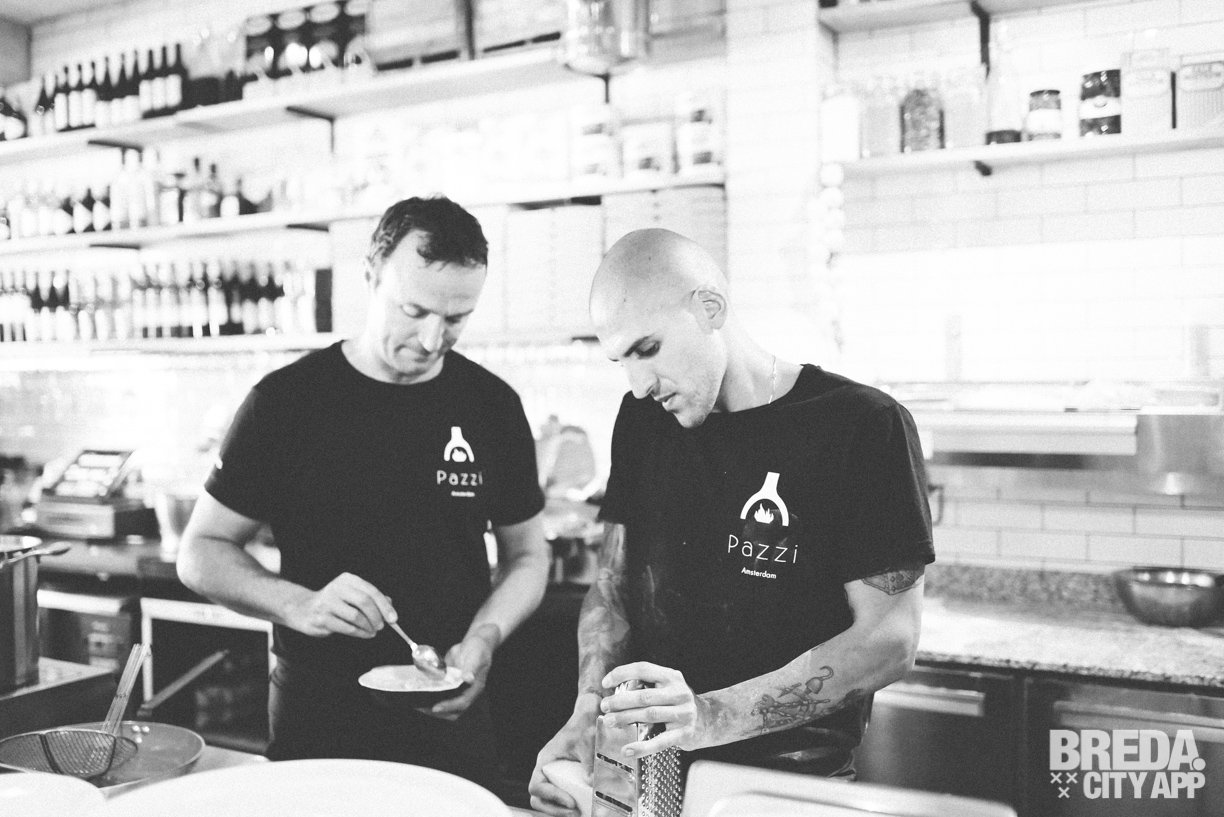 De vestiging in Breda voert een uitgebreidere kaart dan in Amsterdam. Naast de traditionele houtovenpizza's is er een uitgebreide kaart van anti pasti en ook een aantal pasta's. "We willen ook een uitgebreid experience menu gaan aanbieden, waarmee je veel verschillende gerechtjes kunt proeven en delen" legt Tijn uit. In eerste instantie zal de zaak alleen open zijn voor diner, maar in de toekomst komt er wellicht ook een lunchkaart. Reserveren kan via info@pazzibreda.nl!