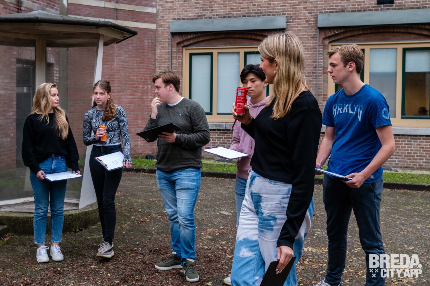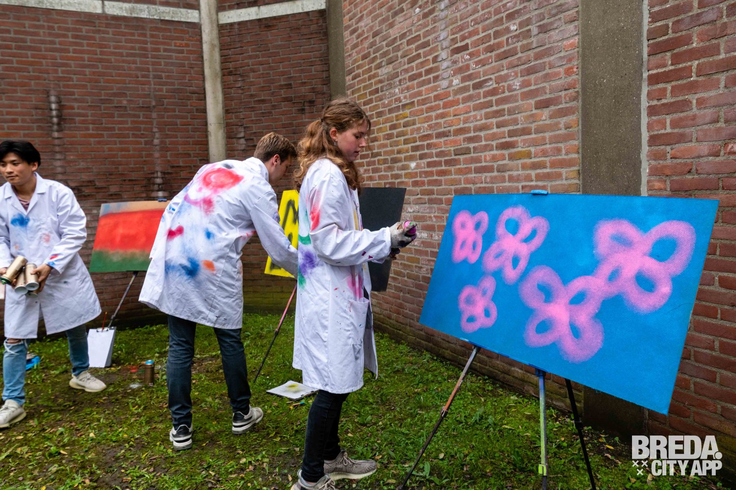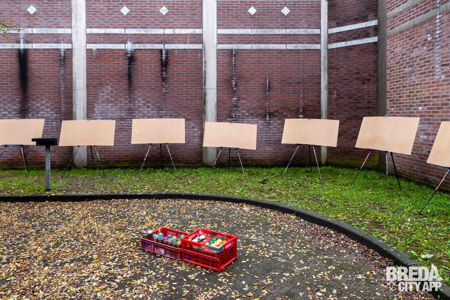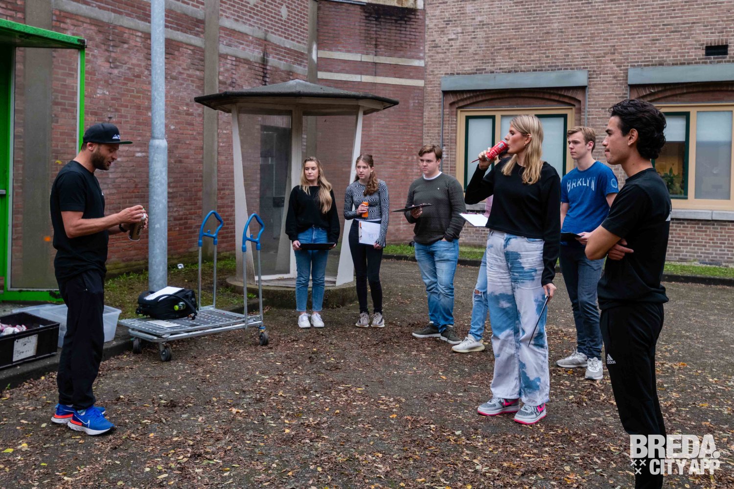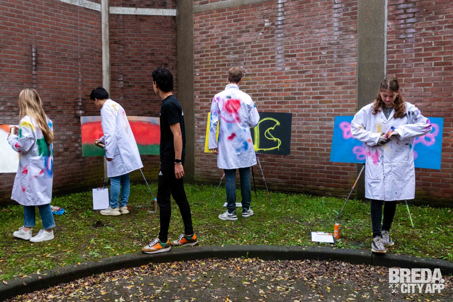 Hierna was het tijd om naar de binnenplaats te gaan, dit is een oude 'lucht plek' voor de gevangen. Op de binnenplaats kregen we een korte een uitleg over de basisregels van graffiti spuiten. We hebben allemaal een overall aangetrokken ter bescherming van onze kleren, het wordt ook aangeraden om oude kleren aan te trekken voor deze activiteit.