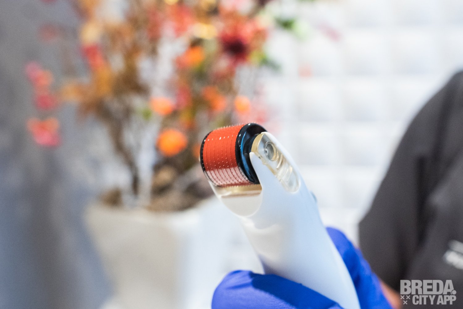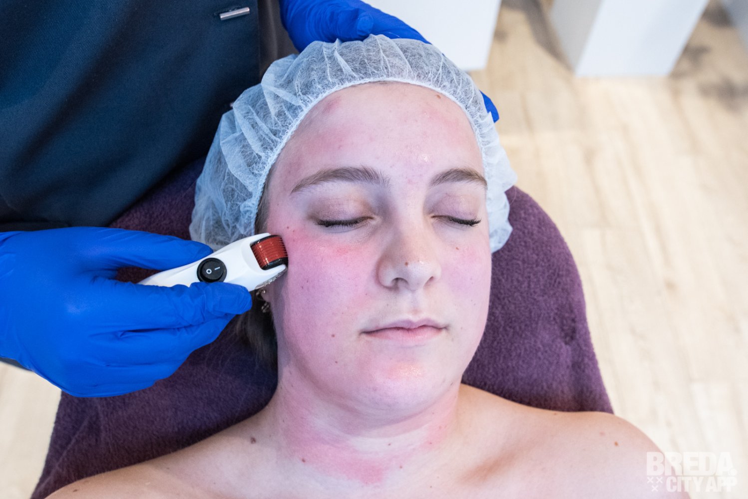 De volgende stap in mijn gepersonaliseerde behandeling is micro-needling. Ik geef eerlijk toe dat ik dit best spannend vind, ik ben namelijk geen grote liefhebber van naalden. Marijn vertelt me wat we gaan doen en stelt me op mijn gemak. Ik leg mijn hoofd neer en Marijn vertelt elke stap die ze maakt, ze laat me zachtjes aan het rolletje voelen met de naaldjes erin, nu ben ik écht gerustgesteld.