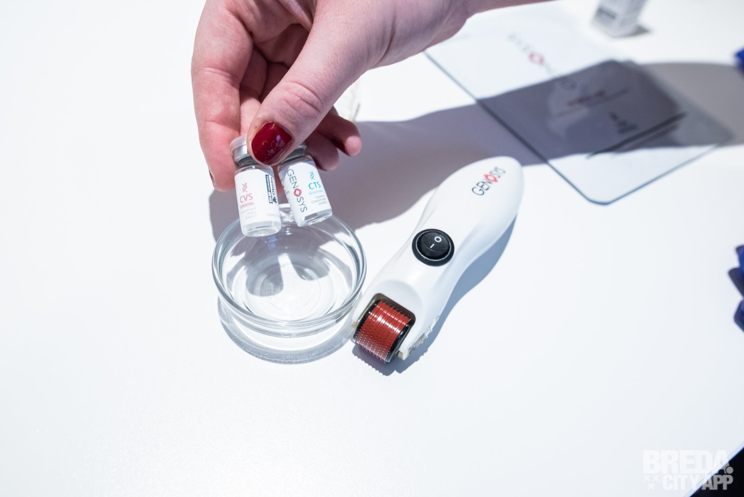 Wanneer we van start gaan begin ik me steeds meer te relaxen. De naaldjes zijn helemaal niet pijnlijk. Na de mirco-needling worden er twee cocktails gemixt: één voor de voeding van mijn huid en de ander voor de porie structuur. Deze cocktail wordt nu optimaal opgenomen door mijn huid aangezien we als het ware kleine gaatjes in mijn huid hebben geboord. Na de micro-needling stelt Marijn voor om een ontspannen hoofdmassage te doen, daar zeg ik zeker geen nee tegen! terwijl ik heerlijk aan het genieten ben, spreken we even door wat we allemaal behandeld hebben.
