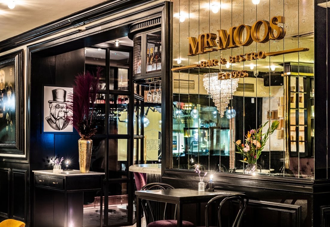In een paar weken tijd onderging het restaurant een totale metamorfose. Denk bij Mr. Moos aan speakeasy en the gentlemens club met een fris sausje van een Franse Bistro. Mr. Moos houdt van echte classics. Aan de gezellige cocktailbar kunnen we genieten van een speciaal geselecteerde cocktailkaart. En ook op de lunch en diner kaart zijn the good old classics weer terug te vinden. Dat is Mr. Moos.