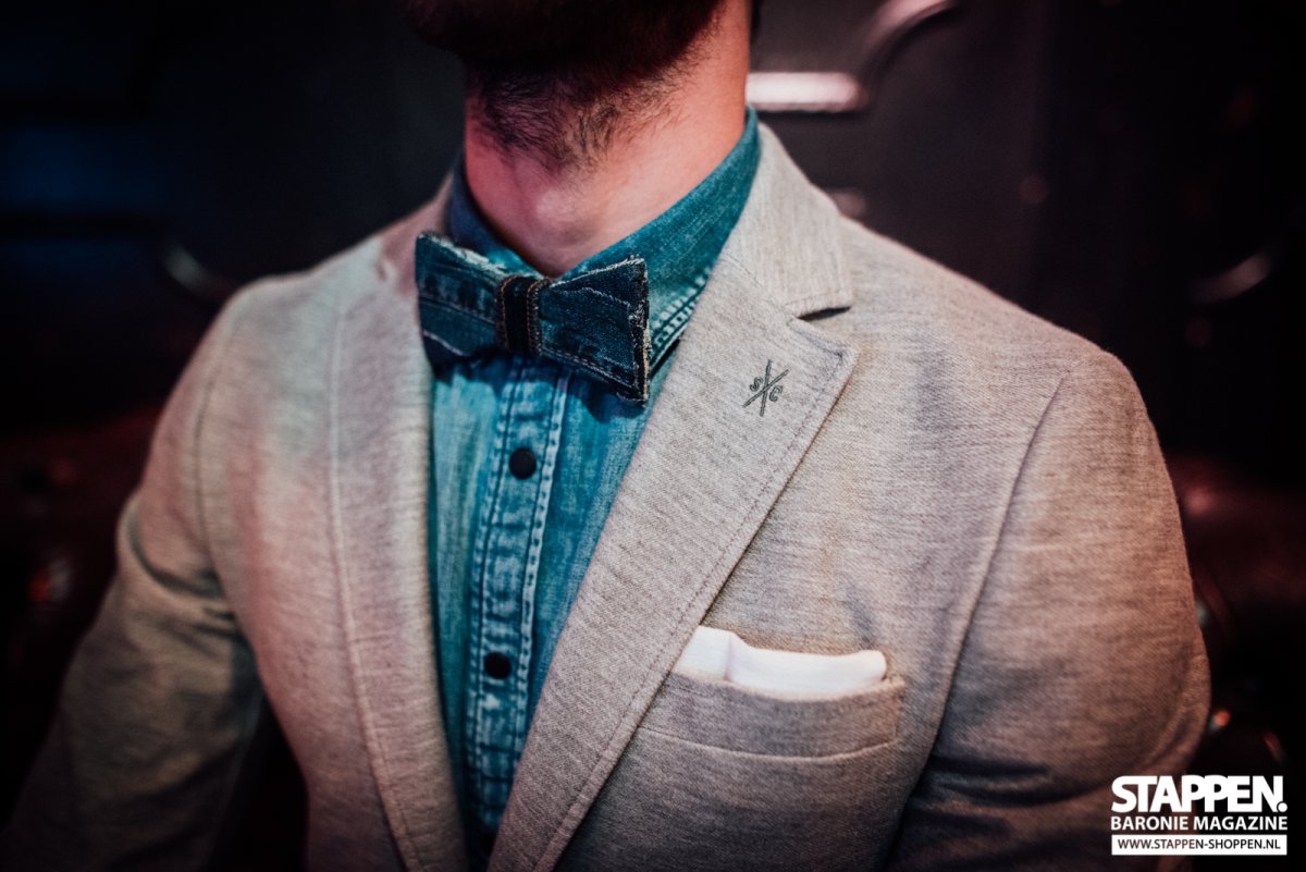 Denim all-over! Het model combineert items uit de winkel van Silvercreek, waar modern werk gecreëerd wordt met behulp van oude ambachten en rijke materialen. Een denim overhemd op een mooie slim fit jeans, een unieke Spijkerbrij bow-tie maakt de look compleet. Zowel de outfit als de witte sneaker is verkrijgbaar bij Silvercreek.