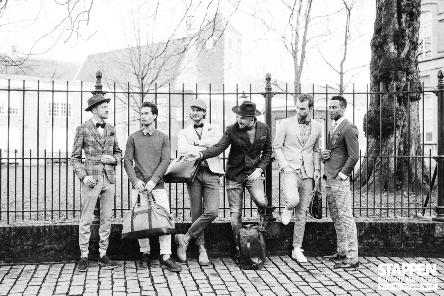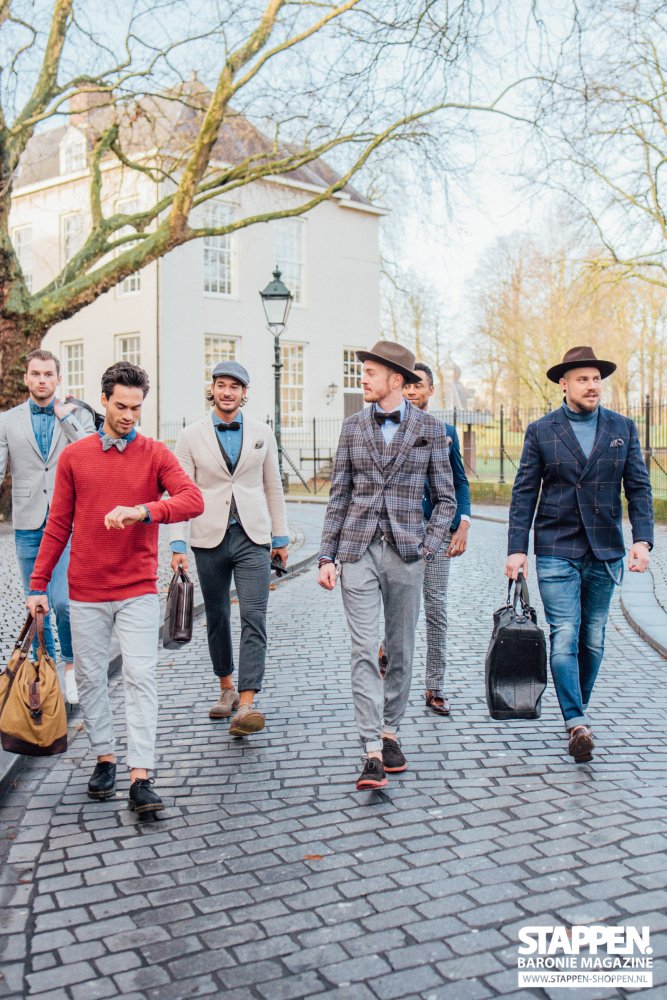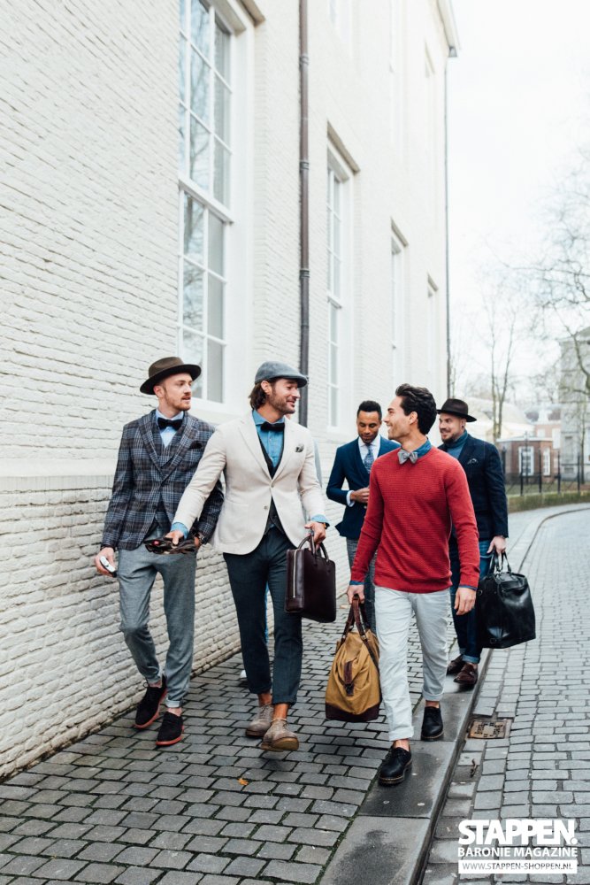 De uitgesproken dandy draagt zijn kleding op maat en laat niks aan het toeval over. Bij deze stijl komt altijd ‘dat beetje extra’ kijken. De outfits van de modellen zijn tot in de puntjes verzorgd: de belangrijke details vind je terug in zowel kleding als accessoires. Zo is de broek in plaats van opgerold, omgeslagen en vastgezet. Zoals de kleermaker het vroeger deed.