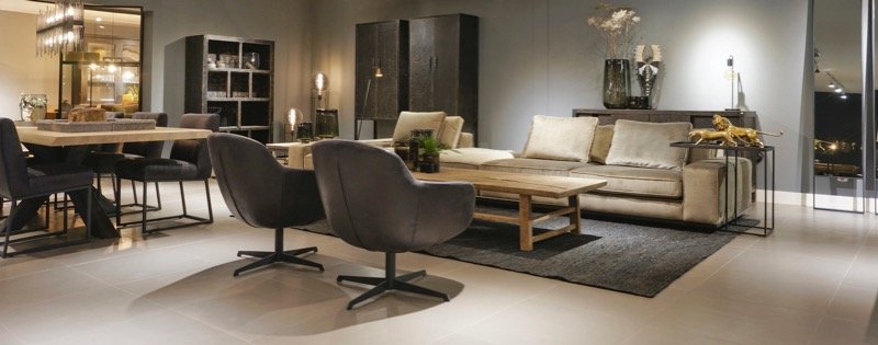 Van penthouse tot gerenoveerde boerderij, aan urban vibes ontbreekt het hier niet in de urban chic stijl met velvet, staal, messing, leder, rookglas en marmer. Kunst geprint op canvas in strak zwart frame. Nieuw in de collectie is behang met mooie prints. Ook muurbekleding van leder en een bijzondere chandelier geven die cosmopolitische sfeer.