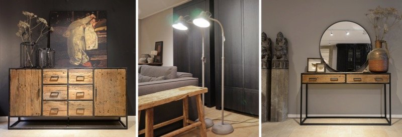 Warm en toch strak, landelijk en toch modern, chic en toch industrieel? Da’s best een uitdaging, toch? De combinaties maken het bijzonder; dus durf te combineren. Een aantal kleinere accessoires op een grote schaal of een dienblad vormt als vanzelf een harmonieus geheel. Mond geblazen glaswerk en stolpen met vlinders en andere curiosa. Gezellige woonkussens van velvet, linnen of leer, grof gebreide plaids. Een mooie spiegel boven je dressoir.