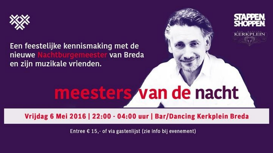 De toegang is € 15,- aan de deur, maar als je De Nachtburgemeester van Breda hebt geliked, kun je een verzoek indienen om op de gastenlijst te worden gezet. Stuur daarvoor een mailtje naar meestersvandenacht@gmail.com met daarin de namen die op de gastenlijst gezet mogen worden. Vol is vol, dus like en mail op tijd. Je krijgt een reactie als je erop staat.