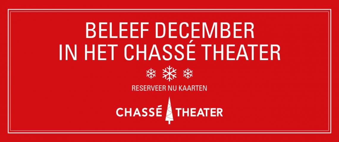 December! De maand waarin de dagen langzaam donkerder en kouder worden. Waarin we binnen de gezelligheid opzoeken met vrienden en familie. De perfecte gelegenheid om samen te genieten van al het moois dat Chassé Theater en Chassé Cinema te bieden hebben. In de sfeervolle omgeving bieden zij een bomvol programma met theater- en filmvoorstellingen voor jong en oud, in alle soorten en maten, voor ieder wat wils. Aangevuld met een uitgebreid aanbod aan heerlijk eten en drinken, zijn zij deze decemberdagen jouw tweede huiskamer.