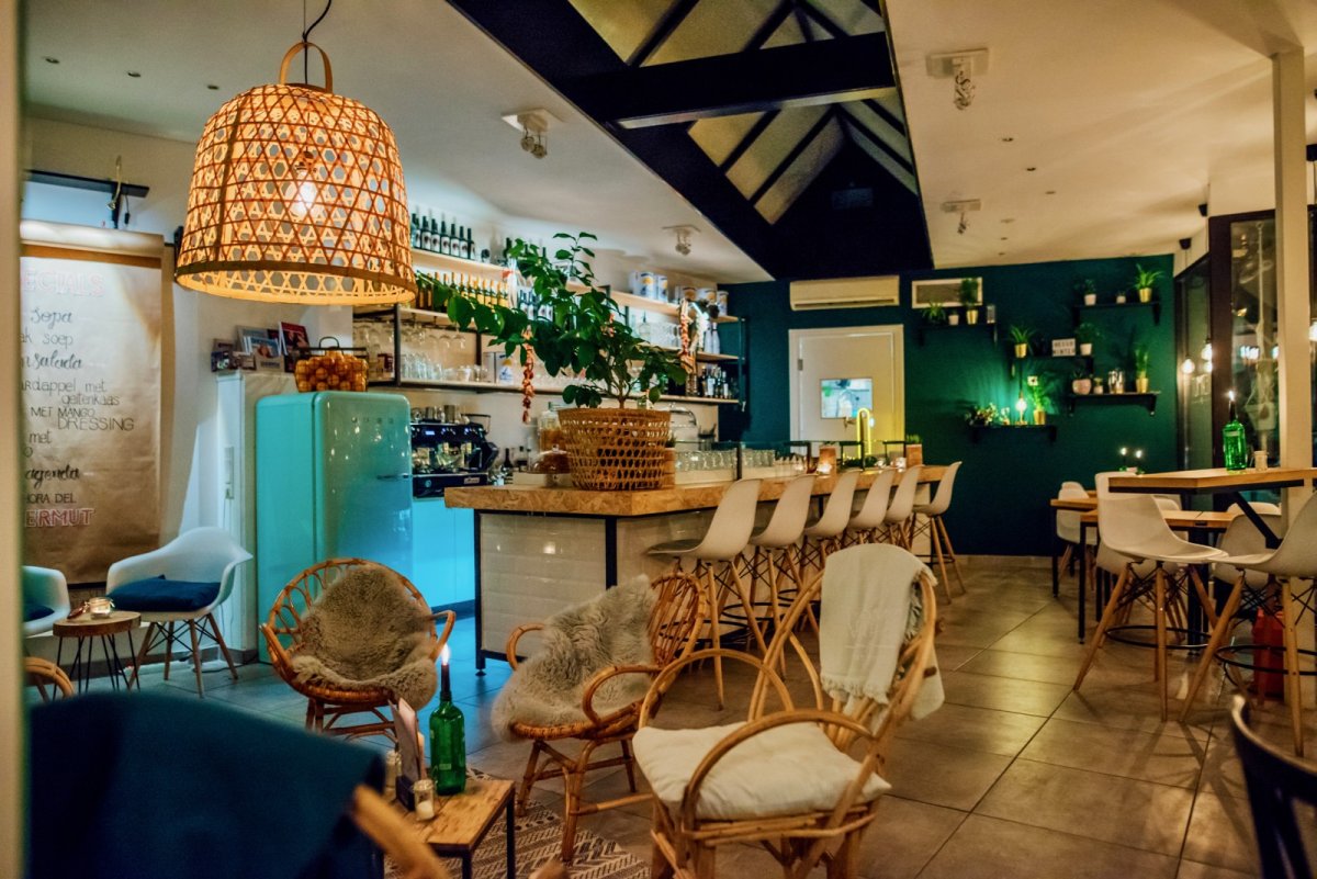 Aan de raamkant is een knusse bank met veel kussens geplaatst en een drietal marmeren tafeltjes met stoelen. Een leuk detail zijn de polaroid foto's aan de muur. "Tijdens bepaalde evenementen maken we foto's, welke we hier ophangen. Als je weer terug komt mag je de foto gratis meenemen" legt Charety uit.