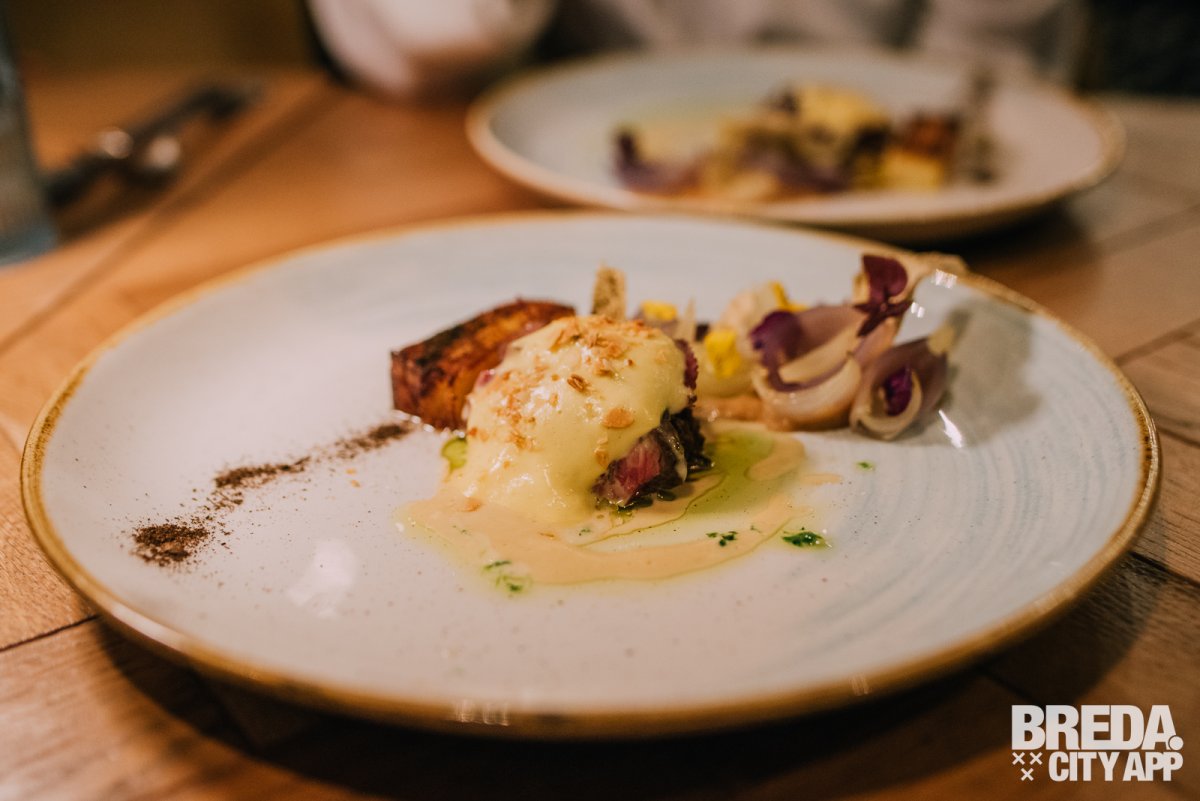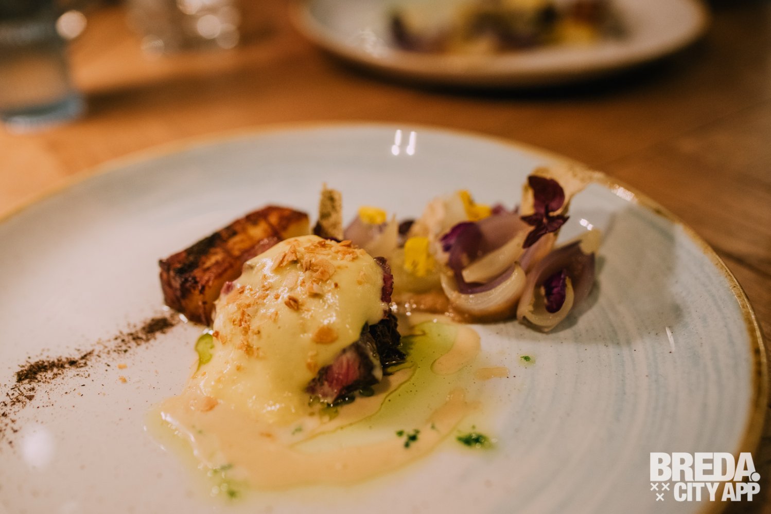 Het hoofdgerecht was een ware traktatie, namelijk picanha of te wel staartstuk van het rund geserveerd met eronder een stoof, en eroverheen hollandaise met gremolata werkelijk een feestje. Ze serveren er nog een crème van gepofte ui bij en een terrine van aardappel en knol en dat maakt het helemaal af.