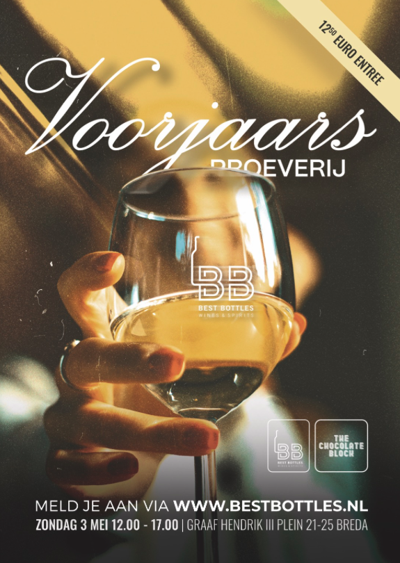 Het voorjaar proef je dit jaar letterlijk tijdens de voorjaarsproeverij bij Best Bottles. Op zondag 3 mei staat alles in het teken van smaak, beleving en bijzondere ontdekkingen. Tijdens deze proeverij krijg je de kans om ruim 100 verschillende wijnen te ontdekken. Van frisse witte wijnen tot volle rode en verrassende specials: er is voor iedere smaak iets te vinden. Perfect voor wie graag nieuwe wijnen leert kennen of gewoon zin heeft in een gezellige middag uit. Bestel je tickets hier.
