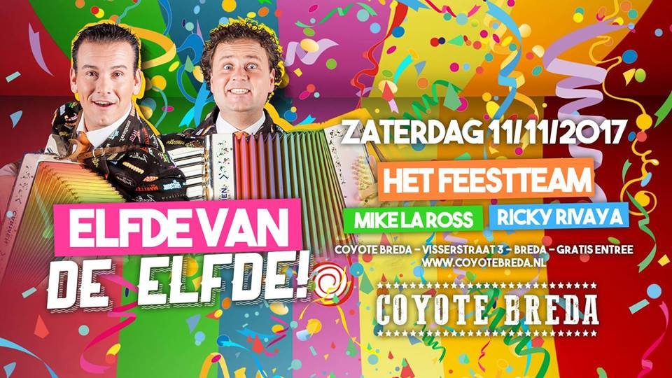 Het feestteam komt niet alleen naar de Grote Markt, ook naar Coyote Breda! Bekend van 'Shirts uit en zwaaien', 'Ik neem je mee', 'Stuiterbal', dit duo is een begrip tijdens Carnaval. Hun nieuwe hit 'Waar zijn die schoenen dan' gaat dit jaar weer iedereen laten springen!