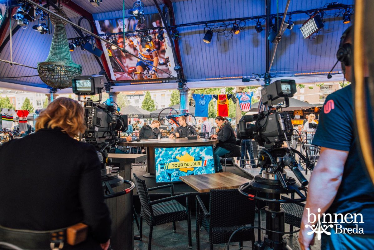 Op zaterdag 7 juli gaat de 105e editie van de Tour de France van start op het eiland Île de Noirmoutier, ter hoogte van Nantes. Wie deze zomer niet naar Frankrijk afreist om de tour bij te wonen, kan de wielerronde uiteraard op TV volgen. Maar ook live vanaf het terras bij Binnen Breda! Waar net als vorig jaar, het programma Tour du Jour uitgezonden werd. Het overdekte terras bij Restaurant Binnen Breda aan de Haven zal namelijk wederom drie weken lang het decor zijn voor de uitzendingen.