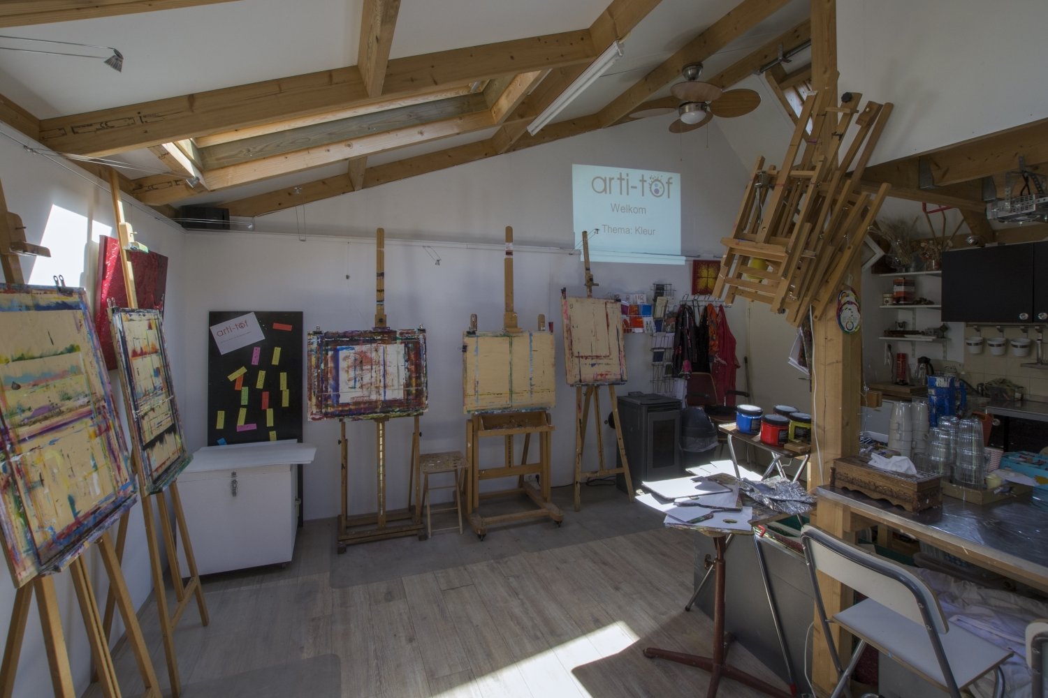 In een prachtig rustiek Atelier in de achtertuin aan de Oude Bredaseweg 118 te Etten-Leur is de werkplek van Jacqueline Braat als beeldend kunstenaar, creatief coach en docent en de vaste locatie van Arti-Tof