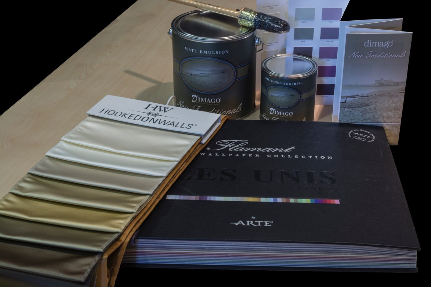 • Little Greene, -Paint & Paper- Sigma, Wijzonol, Sikkens, Boonstoppel, Eijffinger, Arte, Hooked on Walls, Eijffinger, Bece, Vadain, Dimago,