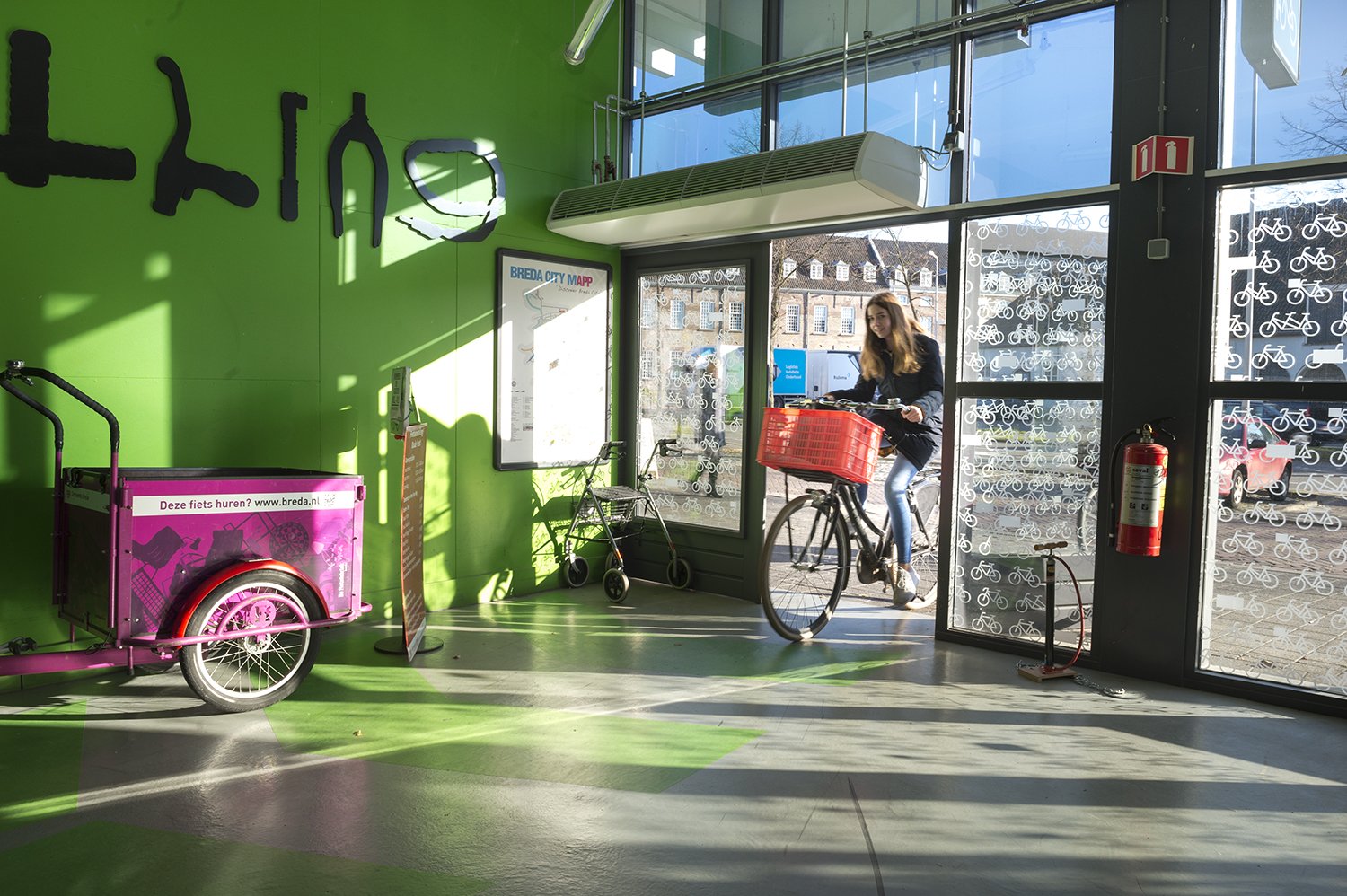 - AED, Bakfiets huren, Buggy huren, Fiets huren, Fietsaccessoire-automaat, Helm afgeven bij beheerder, Kluisjes (ook voor helm), Oplaadpunt e-bikes, Rollator huren, Stallen bromfiets/scooter, Toiletten