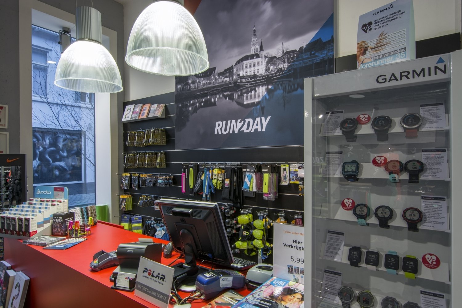 - Nike, Asics, Mizuno, Adidas, Saucony, New Balance, Inov-8, Brooks, Hoka, Scott, SaySky, Odlo, Ciele Athletics, Polar, Garmin, Powerbar, Maurten Sportdrink, SIS Sportvoeding, Nathan
